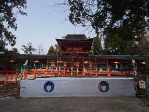 ロープが引いてあったり幕がかかっていたりと、まだお正月の余韻が残るいつもと違う趣の春日大社を独り占めできたのは、早起きの特権ですね。